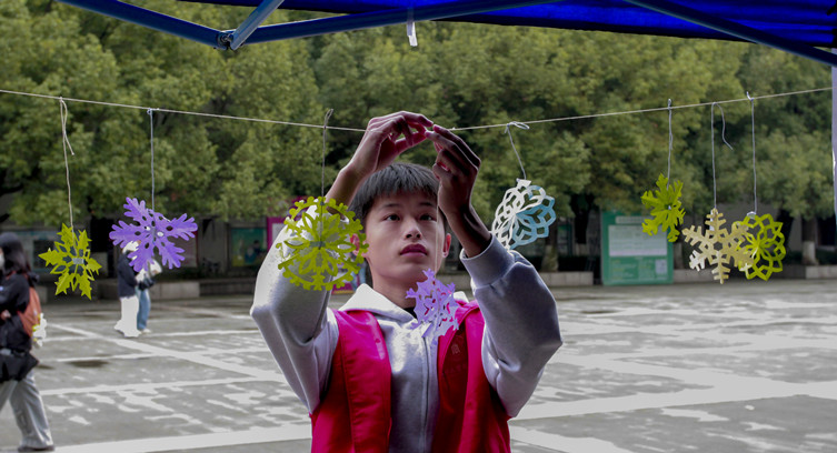 电气与电子信息工程学院绿丝带志愿服务队于 2025年11月6日在杏坛广场顺利开展以“纸剪雪花,立冬送暖”为主题...